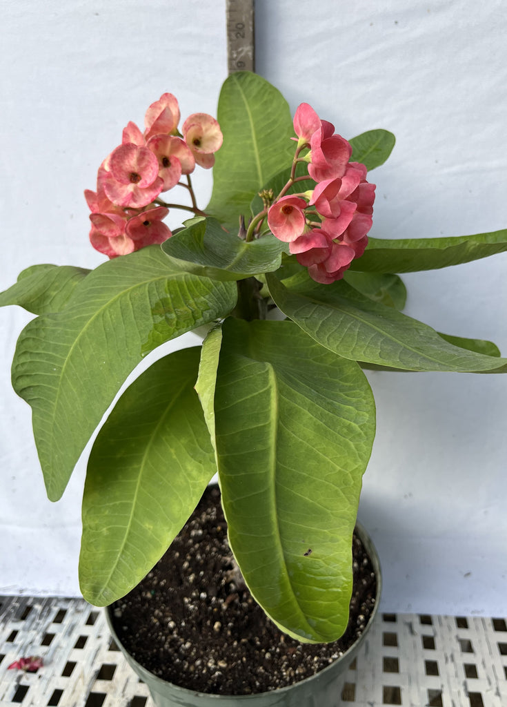 Euphorbia Milii UDOM SETHI is a prominent feature of Ek Udom Garden in Thailand. This striking plant produces large blooms, with each stalk showcasing up to 32 flowers that form stunning ball-shaped clusters. During the winter months, the flowers transition to a deep, rich pink hue, approaching a scarlet shade. This remarkable plant not only produces these impressive clusters but also boasts massive leaves and a fat trunk. Another striking characteristic of this beauty is its unique ability to produce serrated flowers, offering a distinctive choice that inspires passion among collectors and enthusiasts alike.